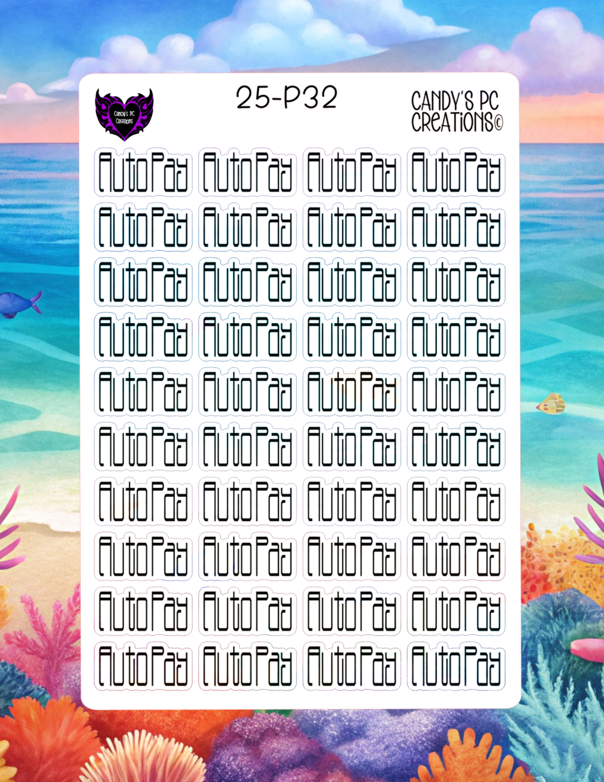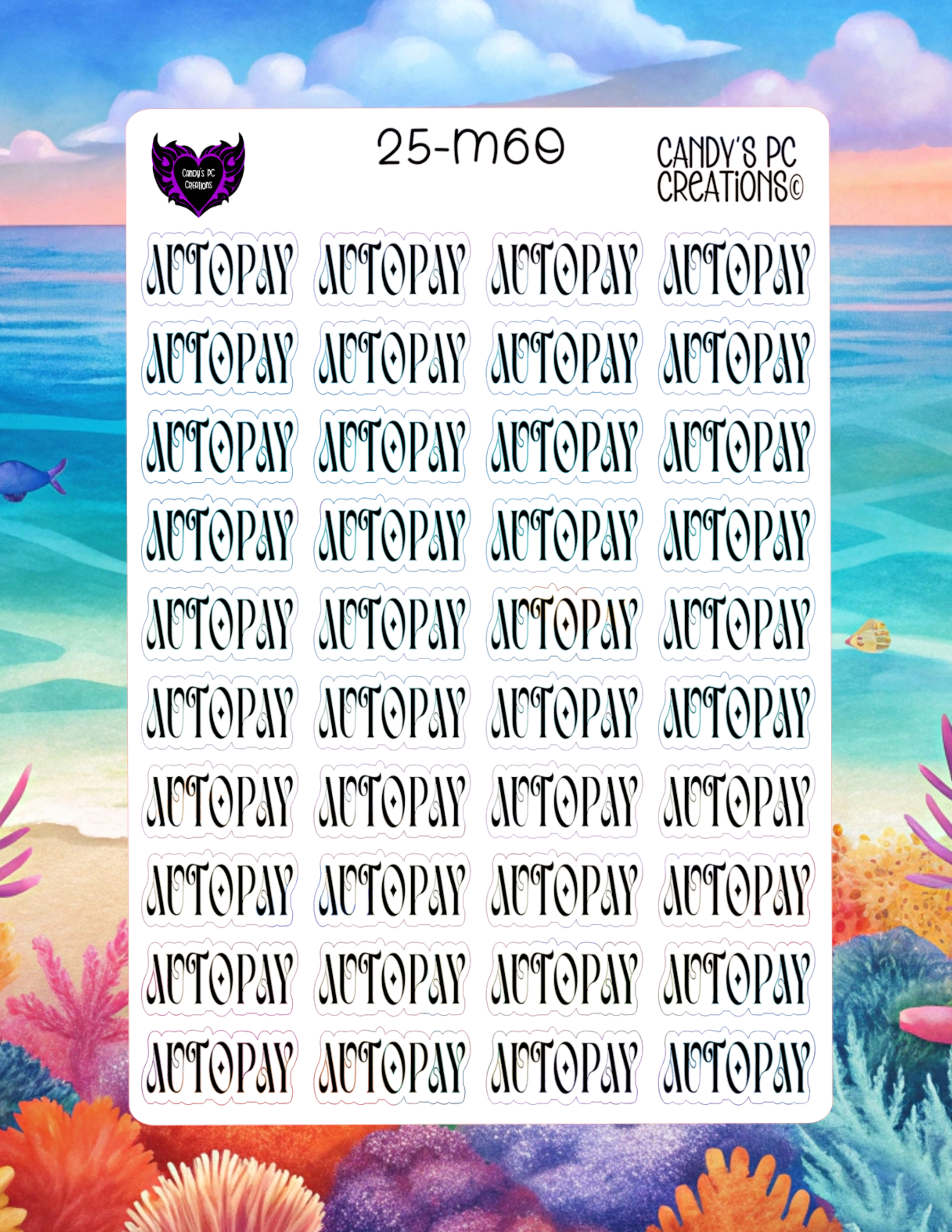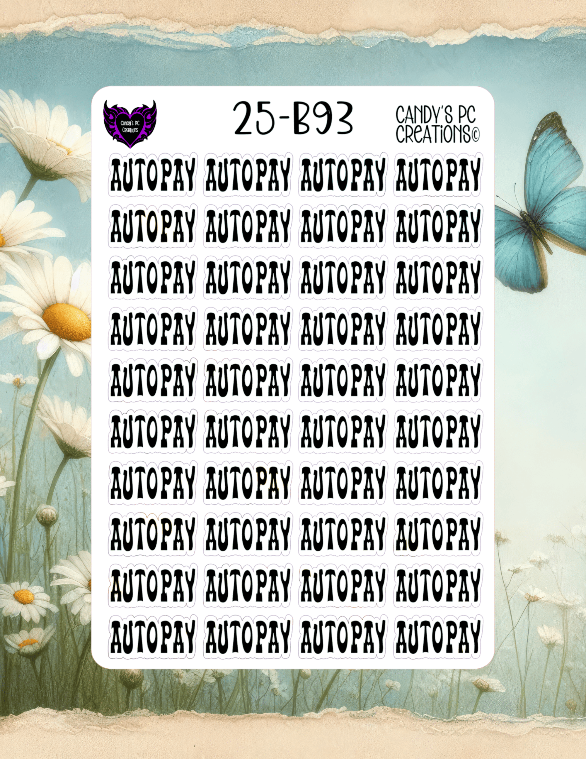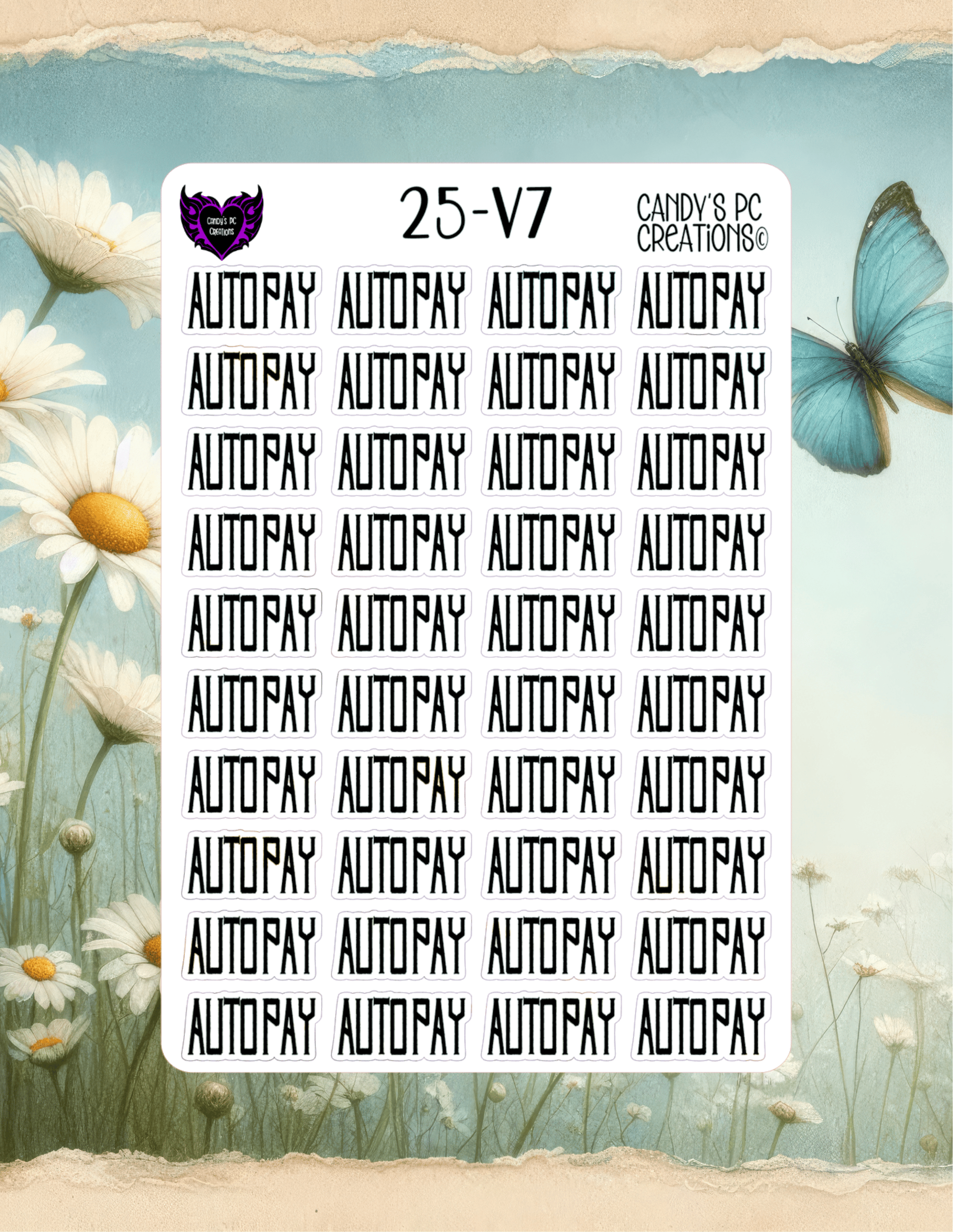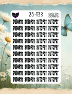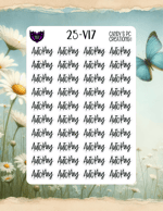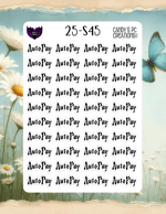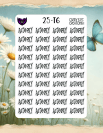 Our planner word stickers offer a versatile range of 25 different fonts to match your personal style. Each sticker is 1” wide by 0.5” high, and the sheet itself measures 4.5” wide by 6.5” high.