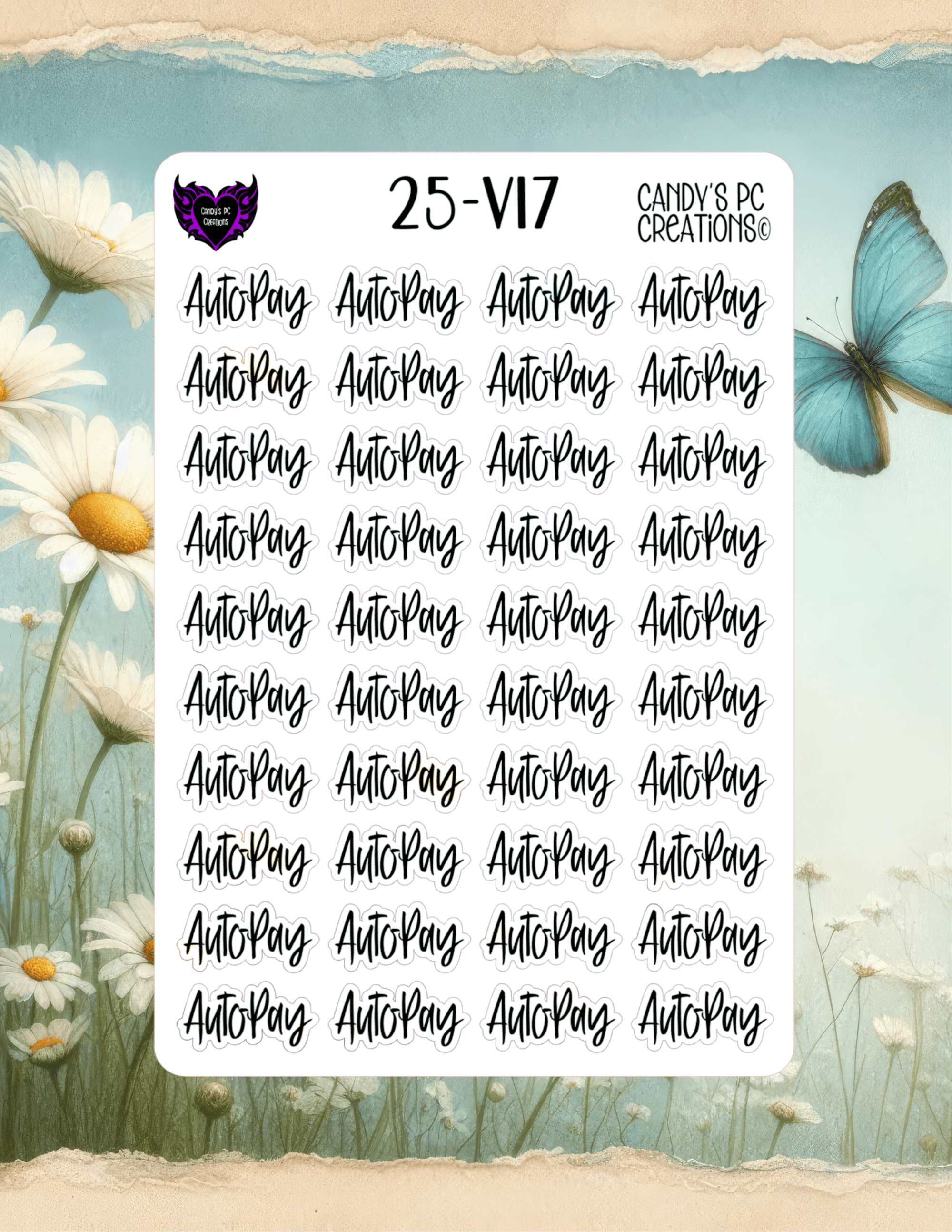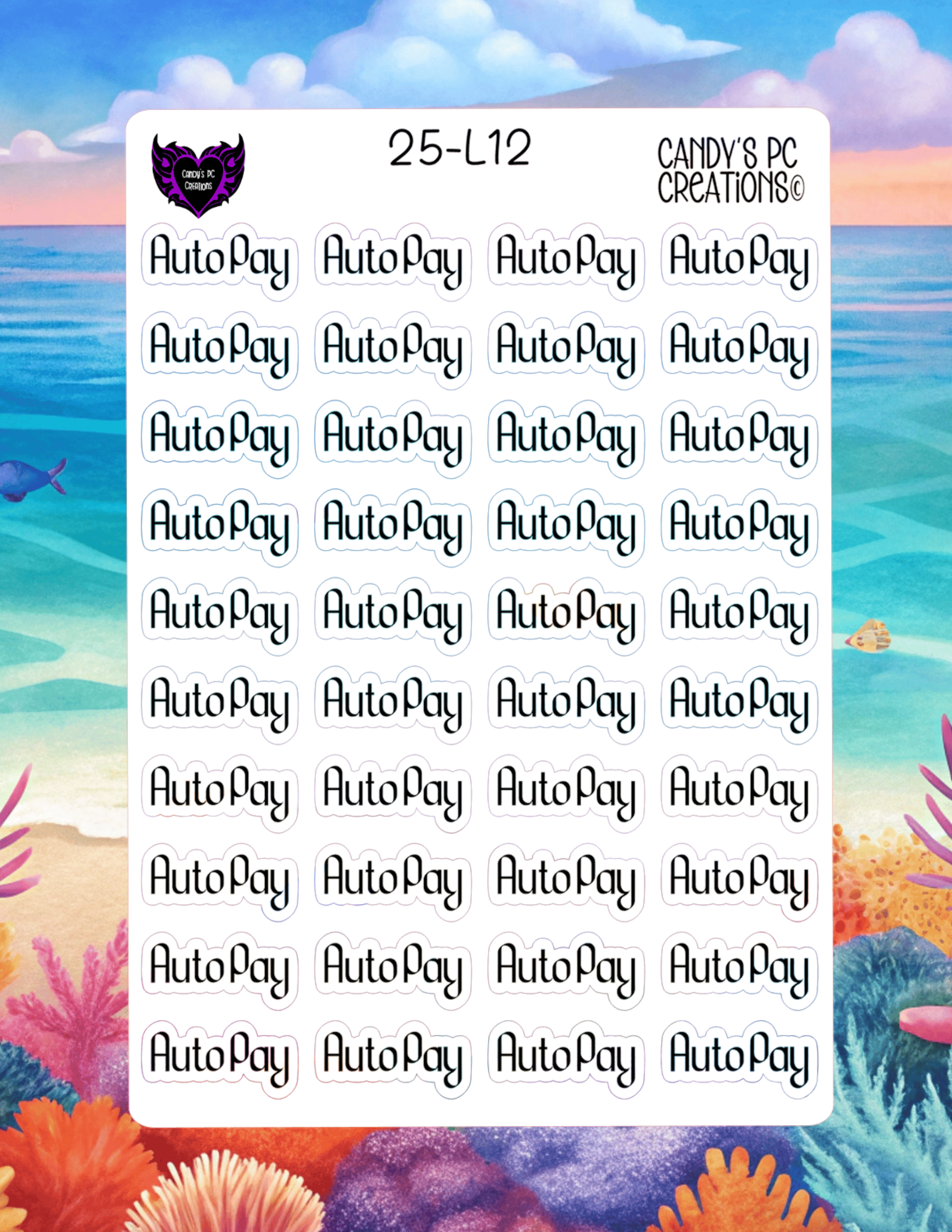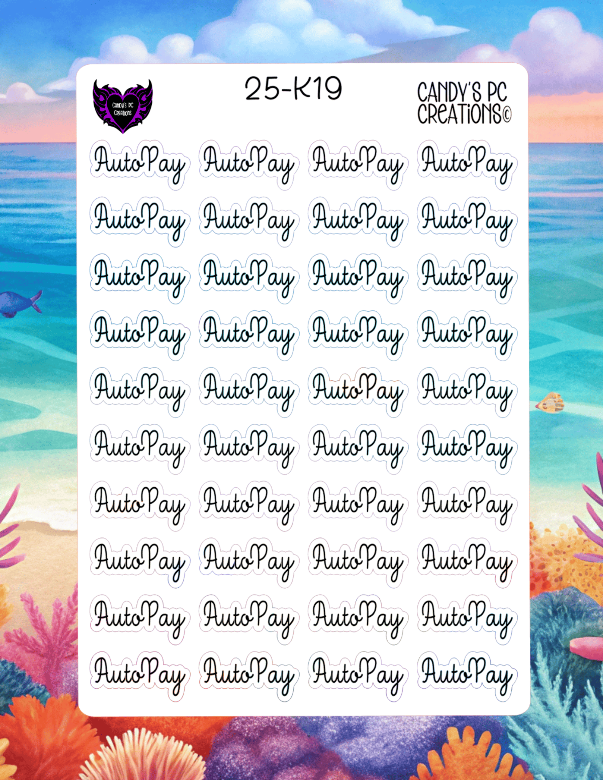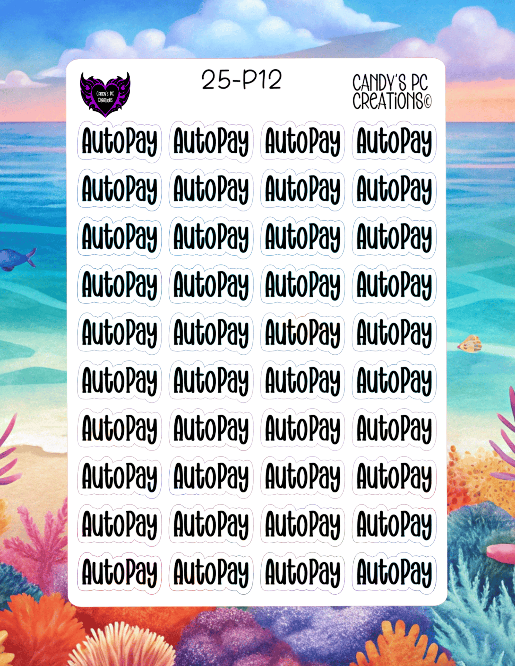 Our planner word stickers offer a versatile range of 25 different fonts to match your personal style. Each sticker is 1” wide by 0.5” high, and the sheet itself measures 4.5” wide by 6.5” high.