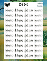 Our planner word stickers offer a versatile range of 25 different fonts to match your personal style. Each sticker is 1” wide by 0.5” high, and the sheet itself measures 4.5” wide by 6.5” high.